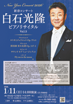 足立区出身のピアニスト、白石氏による毎年恒例のコンサート。バロックからジャズに至るまでの幅広いジャンルの音楽と、生き生きとした楽しい語りの魅力をサロンならではの近さで味わえる。 【日時】1月11日(日) 午後2時開演 (1時30分開場) 【場所】わたなべ音楽堂 〈ベルネザール〉 【料金】一般4000円、学生2000円 【曲目】プロコフィエフ/ロミオとジュリエットOp.75より、ブラームス/間奏曲変ホ長調Op.117-1、ロジャース/サウンド・オブ・ミュージックより、ハワード/Fly me to the moon他 【予約・問合せ】TEL&FAX3889・1662わたなべ音楽堂 ★7日(水)必着(HPの応募は同午後3時まで)
